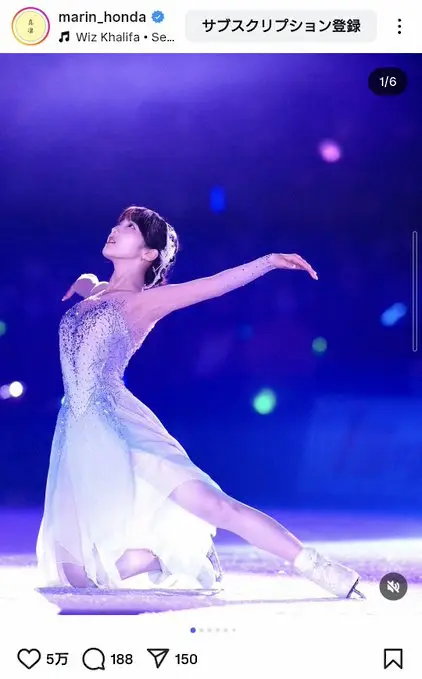 「大歓声に包まれながら駆け抜けた全てが、これまで積み重ねてきた日々をピカーンって照らしてくれた気がします」と書き出した本田さん。交際中の宇野昌磨さんプロデュースのアイスショー「アイスブレイブ」に参加した事を報告した。