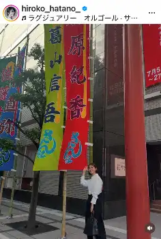 「先日、紀香姉さんの舞台、サザエさんを観に娘達と明治座へ」とつづり、明治座前でのショットを投稿した。