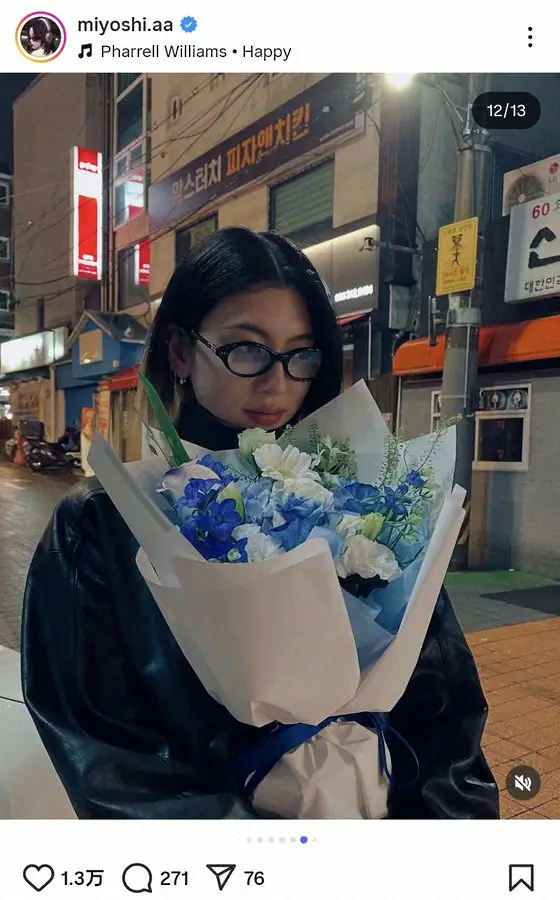 青を基調とした花束を抱えるショットなど、複数枚の近影を公開。自身の誕生日を華やかに彩った。