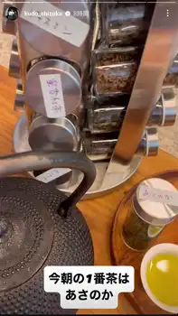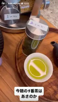 工藤は「今朝の1番茶はあさのか」とつづり、鹿児島県の日本茶「あさのか」と書かれた茶葉ケース、鉄瓶で淹れられたお茶の画像を投稿した。