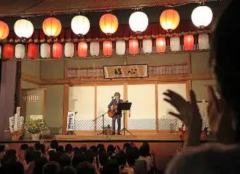バンドの代表曲「星空のディスタンス」の出囃子(でばやし)が流れると満員の客席からは大歓声。スーツ姿でギターを持って登場し「初代林家三平師匠、生誕100周年おめでとうございます」と祝福。高座では弾き語りしながら「語尾が上がる人」「お客さんに歌わせて自分じゃ歌わない人」など“歌手あるある”などのギター漫談を披露。真面目に歌うかと思いきや、流れるようにネタに入って客をほんろう。笑いの渦に巻き込んだ。