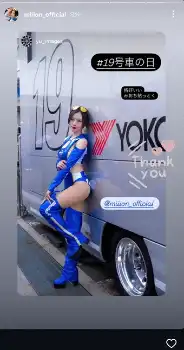 「なんの顔なんだろ。。」とつづり、レースクイーンを務めているスーパーGTのチーム「WedsSport ADVAN GR Supra」19号車のブルーのレースクイーン・コスチューム姿の写真をアップ。ハッシュタグで「19号車の日」と添えた。