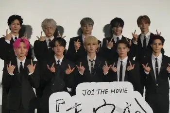 「JO1」映画完成イベ 10人全員黒スーツ&黒ネクタイ姿「11人で進む」 活動休止の鶴房汐恩欠席も