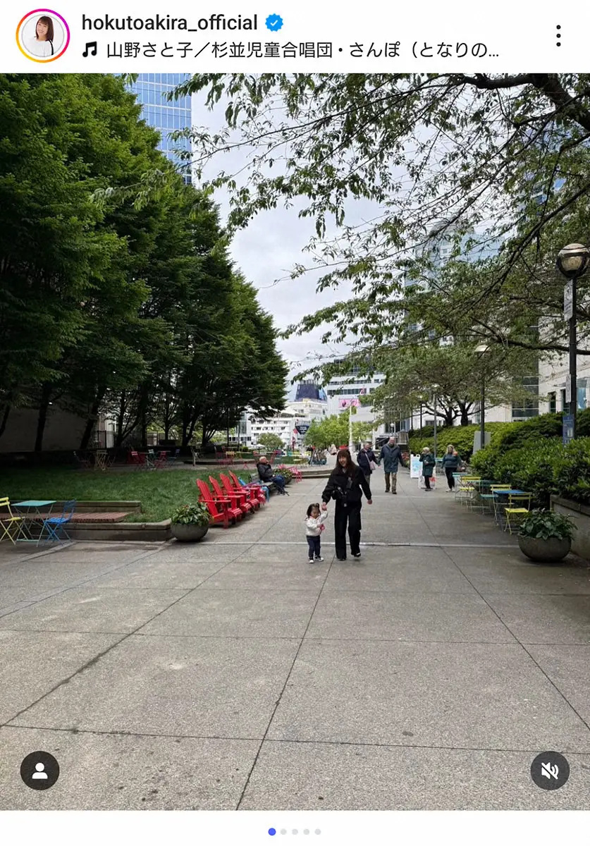 元女子プロレスラーでタレントの北斗晶(57)が22日、自身のインスタグラムを更新。カナダ・バンクーバーで1歳の孫と散歩するショットを公開した。