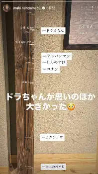 タレントの西山茉希(39)が22日、自身のインスタグラムのストーリーズを更新。人気アニメキャラクターの身長に驚いたことを報告した。