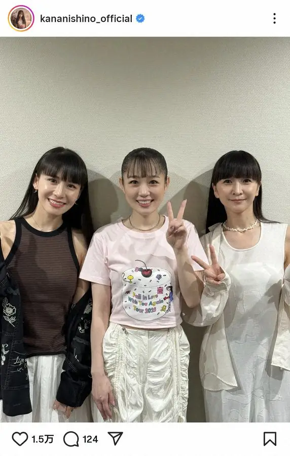 「私も2月にPerfumeのライブに遊びに行かせてもらったんやけど、カッコよく、美しいパフォーマンスに感動して、MCでお腹よじれるくらい笑って、めくるめく可愛い演出にワクワクして、もう全公演行きたかったくらい!」と自身の体験も報告しつつ「Perfumeのお三方にはいつも刺激をもらっていて、会うと、尊敬と共感とエモすぎる気持ちでいっぱいになります 今度はのっちにも会いたいな」と「Perfume」のもう1人のメンバーのっちについても言及。「そんな記念写真をここに残しておきます」と締めくくった。