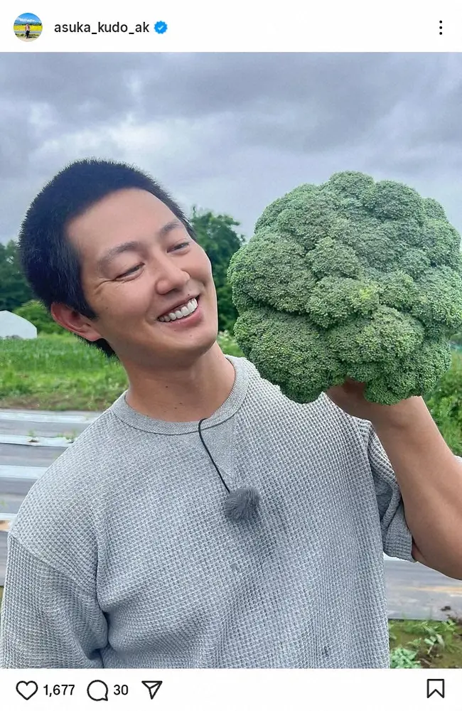 俳優の工藤阿須加(33)が25日、自身のインスタグラムを更新。畑で収穫した野菜を披露した。
