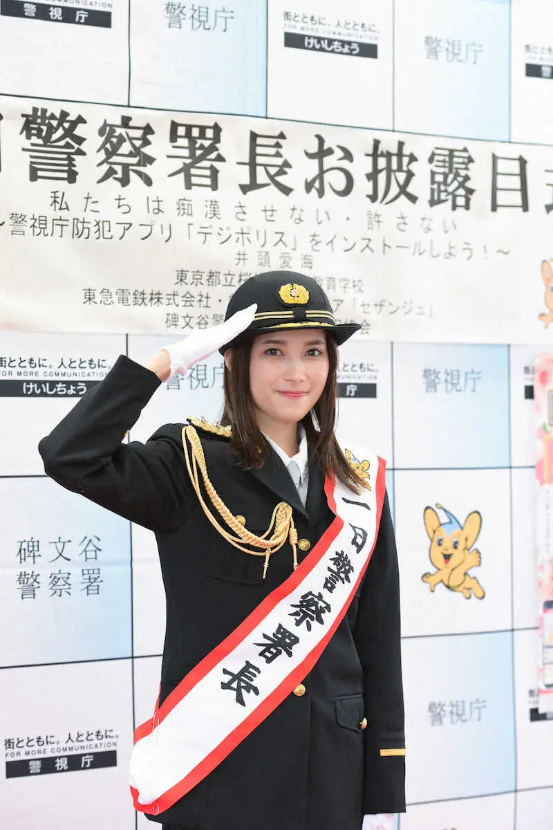 女優の井頭愛海(24)が25日、警察庁碑文谷警察署の一日警察署長を務めた。