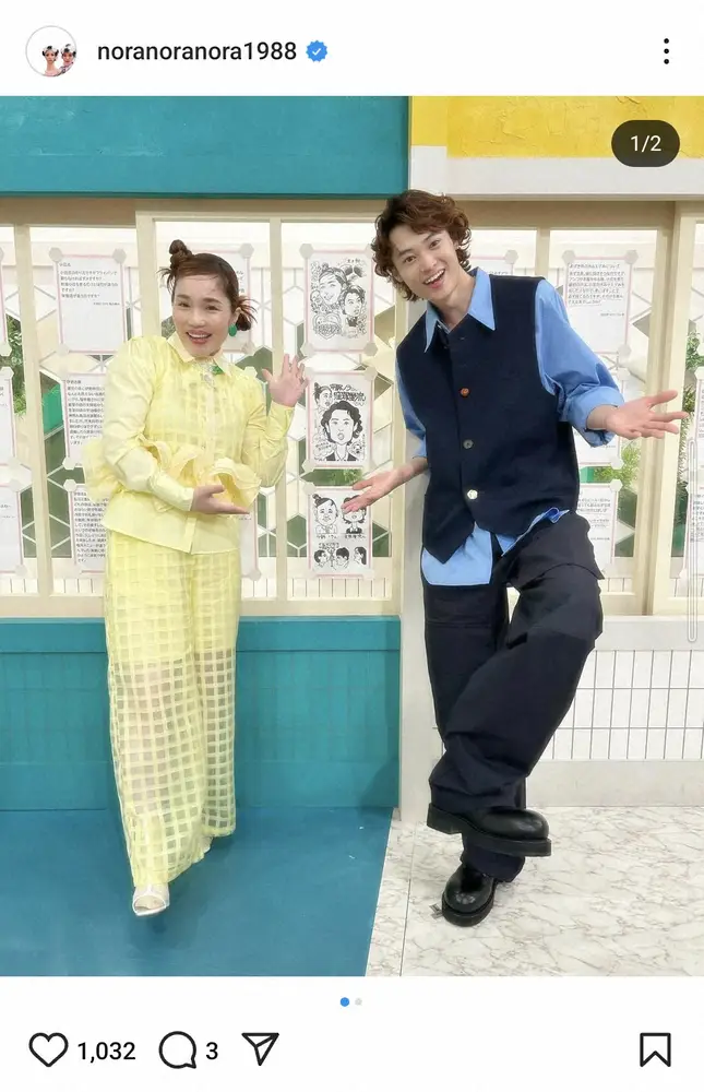 お笑いタレントの平野ノラ(46)が28日までに自身のインスタグラムを更新。番組で共演した人気俳優との2ショットを披露した。