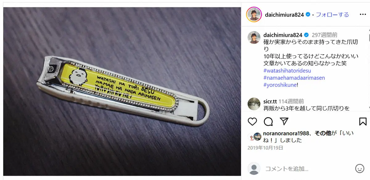 貝印公式インスタグラム(@kai_corporation)から 三浦大知“こだわりすぎ”エピソード お気に入りの爪切りが廃番と聞きコラ… ギャラリーで見る この記事のフォト 2025年06月29日の画像一覧 もっと見る 2025年06月29日の画像をもっと見る