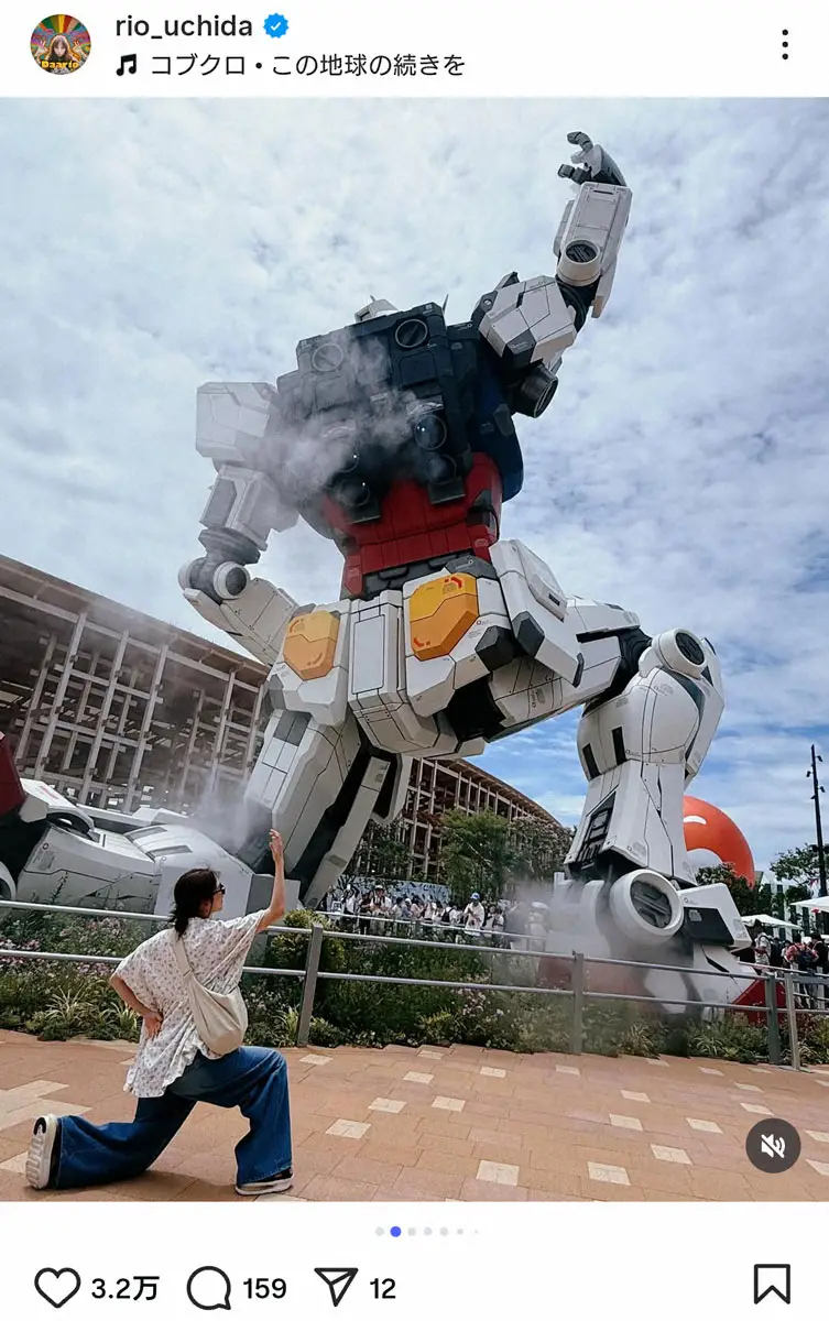 「楽しみにしていた大阪万博 二日間楽しんできたー!」と報告した内田。ガンダムポーズを決める写真などを披露した。