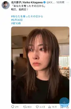 北川景子 泣きはらして…“オフショット”公開 主演ドラマ最終回前「ハンカチ必須」「絶対リアタイ」の声