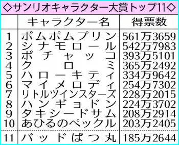 「ポムポムプリン」9年ぶり4度目の1位に返り咲き 「サンリオキャラクター大賞」