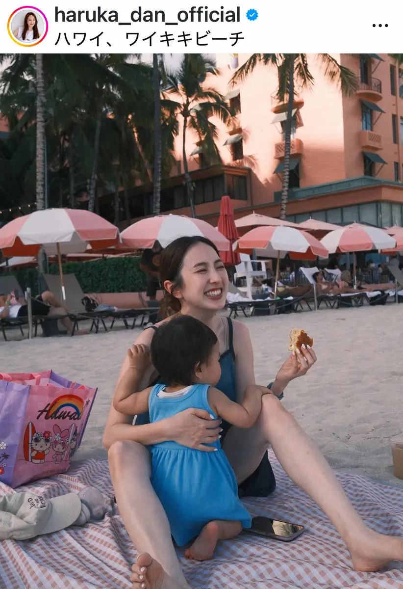 「毎日プールや海に入ってからお昼寝をして美味しいご飯を食べて夕陽を見てお散歩して。幸せ時間」「しばらく旅のinstagramにお付き合いくださいませ」と記し、ハワイ・ワイキキビーチでくつろぐ母子ショットを複数枚公開。「#マイペースな2人」「#家族旅行」「#ハワイ」と添えた。