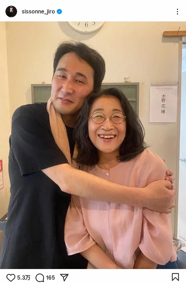 じろうは「平凡パンチライン、今日千秋楽でした」と、自身がゲスト出演していた舞台公演が千秋楽を迎えたことを報告。「5月12日から稽古開始。木野さんに恋した2ヶ月でした。抱きついても怒られませんでした」と、同公演で演出を務めた同郷の女優・木野花との2ショット写真を公開した。