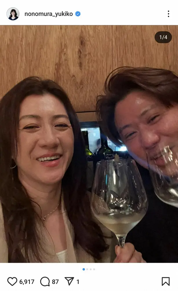 放送作家の野々村友紀子氏(50)が1日までに自身のインスタグラムを更新。夫でお笑いコンビ「2丁拳銃」の川谷修士(51)とのデートショットを披露した。