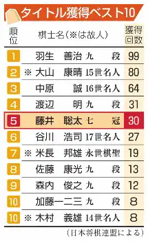 棋聖位を防衛し、戴冠期数が節目の30に到達。「これまでのタイトル戦は大変なシリーズばかり。30期という結果は少なからず幸運でした」と、こちらの感想もいつもながら控えめだ。