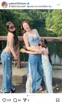 木下優樹菜さん 彼撮影の母娘3Sが大反響「三姉妹にしかみえない」「ゆきなちゃん似」「スタイル良」