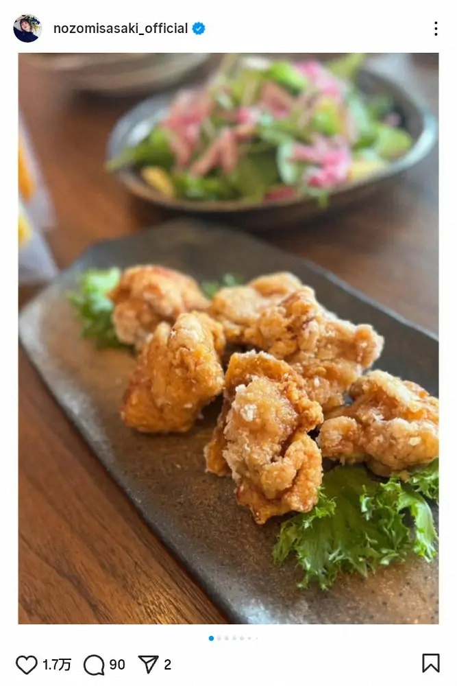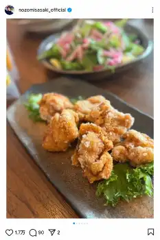 佐々木は「日々のご飯!」と書き出し、唐揚げや肉じゃが、焼きおにぎりなどの写真を公開。「テーブルにおしゃれに出した料理を写真撮って載せたいけど、盛り付け前の物ばかり」と泣き笑いの絵文字を添えた。