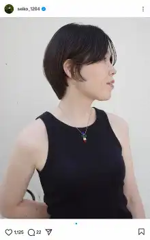 誠子は「夏ショートボブ」とコメント。黒いタンクトップにデニムを合わせたファッションで、ヘアカットしたことを伝えた。