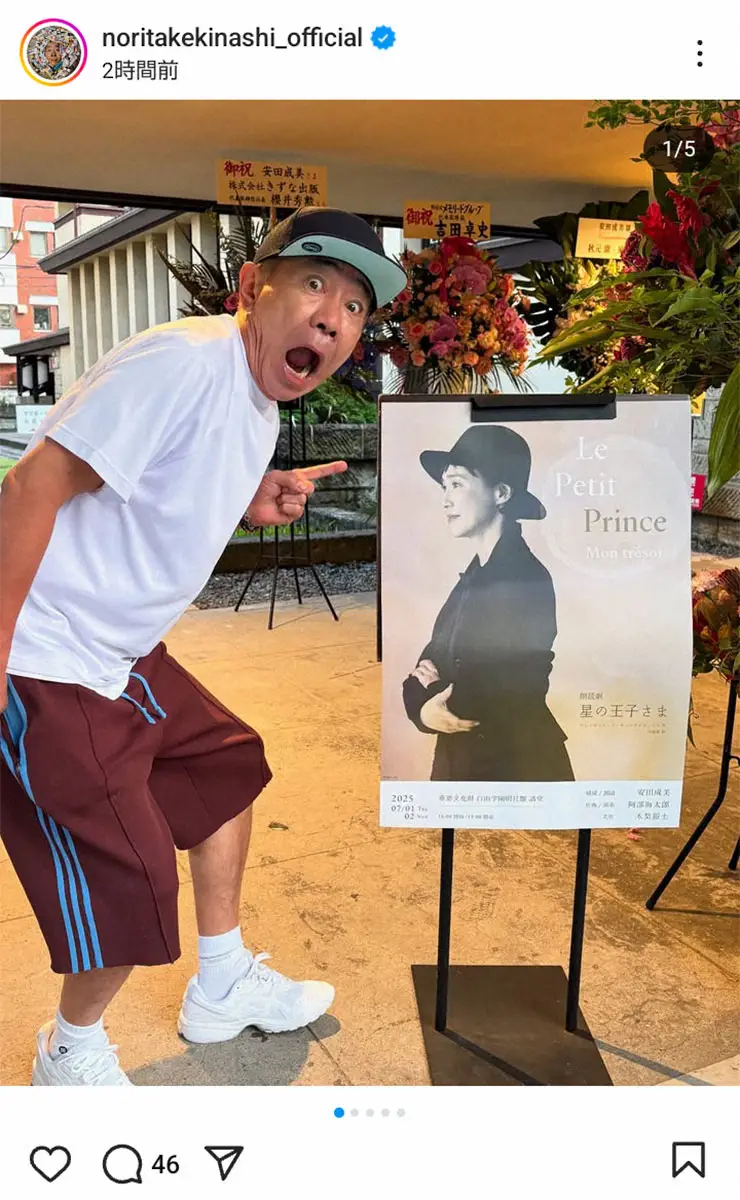 木梨憲武 Photo by スポニチ 木梨憲武 妻・安田成美の朗読劇鑑賞 登壇交渉「即却下」も“本名呼び”に… ギャラリーで見る この記事のフォト 2025年07月03日の画像一覧 もっと見る 2025年07月03日の画像をもっと見る