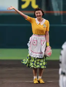 5日から大阪・新歌舞伎座で開幕する主演舞台「サザエさん」にちなみ、サザエさんの髪形と衣装で登場。ワンバウンド投球を披露し、歓声を浴びた。