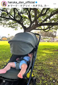 以前の投稿でハワイへの家族旅行を報告していた團。「今回旅行でとーっても助かった @bugaboojapan の新作Butterfly2 機内に持ち込めるサイズに簡単に片手で折りたためるし、何よりフルフラットになる」とハワイでベビーカーを押す姿を投稿した。
