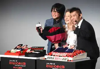 トムとは同い年で親近感を感じている様子。スタントなしにアクションに挑むトムの姿が魅力的で「全部やってるでしょ。凄いですよね」とうなった。「もし俺だったら大変ですよ。“かんとくー、かんとくー、怖いから吹き替え(スタント)使って~”と言う」と予想し、笑いを誘った。
