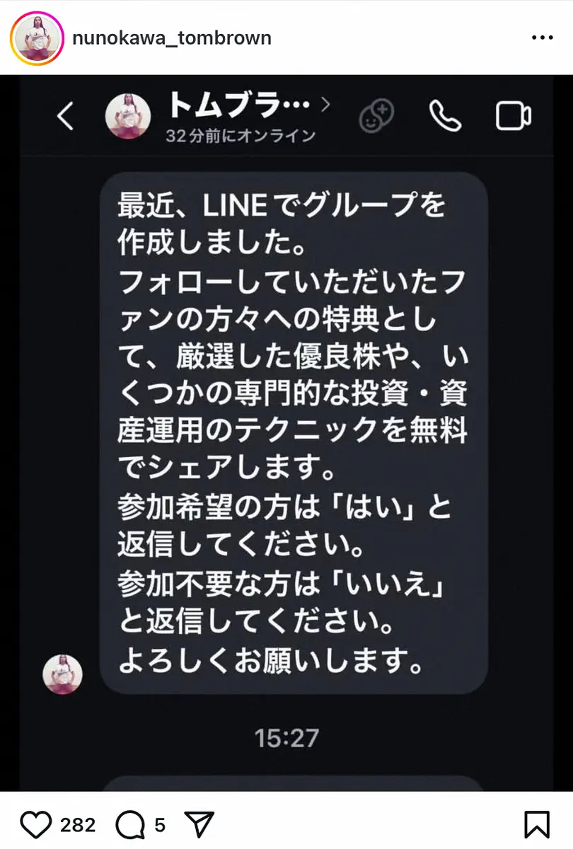 「トム・ブラウン」の布川ひろき Photo by スポニチ トム・ブラウン布川 自身を装うインスタ偽アカウントに注意喚起「信じな… ギャラリーで見る この記事のフォト 2025年07月04日の画像一覧 もっと見る 2025年07月04日の画像をもっと見る