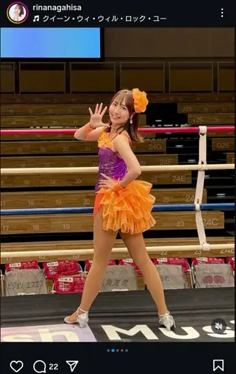 フリーアナウンサー、女優として活躍する長久梨那(37)が4日までに自身のインスタグラムを更新。リングでのオレンジ色のコスチューム姿を披露した。