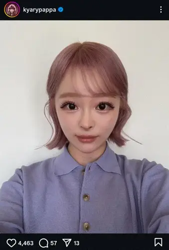 歌手のきゃりーぱみゅぱみゅ(32)が4日までに自身のインスタグラムを更新。新ヘアのピンクミニボブ姿を披露した。