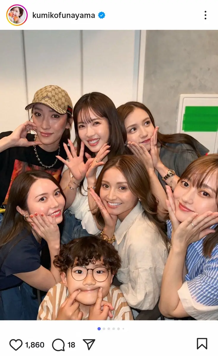 モデルでタレントの「くみっきー」こと舟山久美子(34)が、4日までに自身のインスタグラムを更新。懐かしメンバーとの再会ショットを公開した。