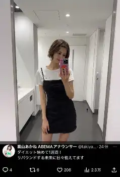 ABEMA人気女子アナ「ダイエット始めて1週間!」 ミニキャミワンピS!「太るイメージ沸かない」の声