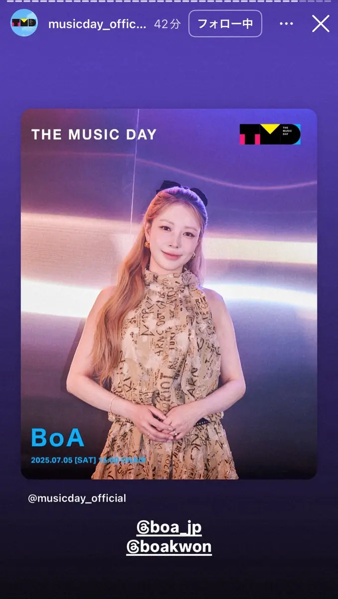 BoA(2011年撮影) Photo by スポニチ BoA 変わらぬ歌声&美スタイル健在! 金髪姿で名曲歌唱…ネット衝撃「ま… ギャラリーで見る この記事のフォト 2025年07月05日の画像一覧 もっと見る 2025年07月05日の画像をもっと見る