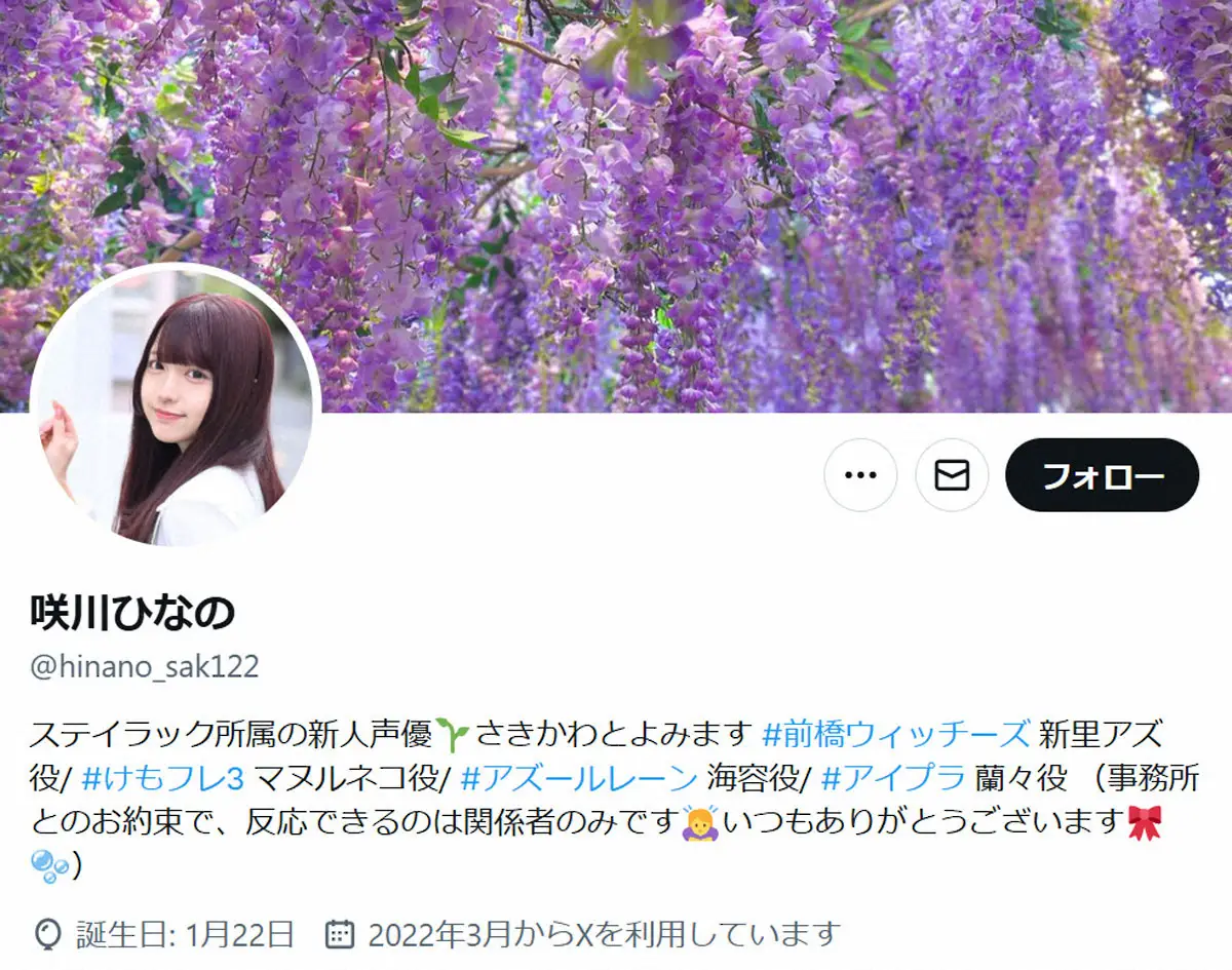 声優・咲川ひなの(21)が偽膜性声帯炎の診断を受けたことを5日、所属事務所の公式サイトで発表された。