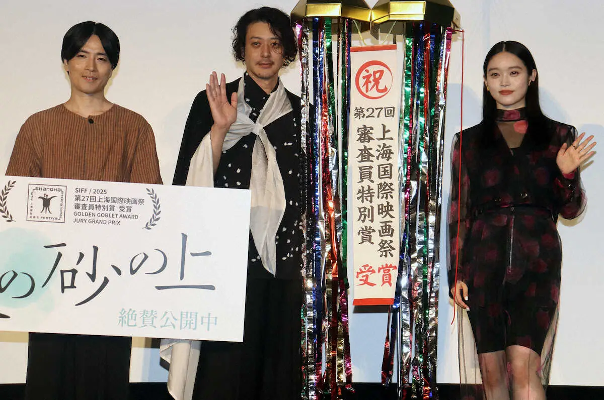 6月の上海国際映画祭で審査員特別賞を受賞し、「審査委員長のジュゼッペ(・トルナトーレ監督)さんという伝説の方がイチ推ししてくれて光栄」と笑顔。お祝いのくす玉割りでは、中身が顔面を直撃するハプニングに苦笑いだったが「ミニシアター系の映画は、成功が次につながっていくので応援してほしい」と呼びかけた。