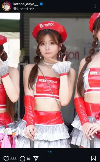 “デカ盛り№1レースクイーン”水瀬琴音 レッド・コス姿披露に「圧倒的な可愛いさ!」「似合ってる」