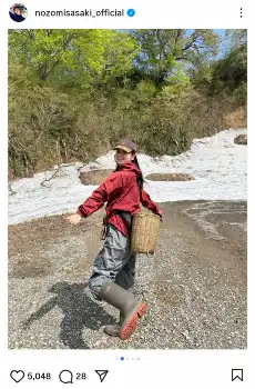 佐々木希 激レア? 長靴姿の完全防備で山菜採りへ「最高の旅になりました!」サウナも楽しむ