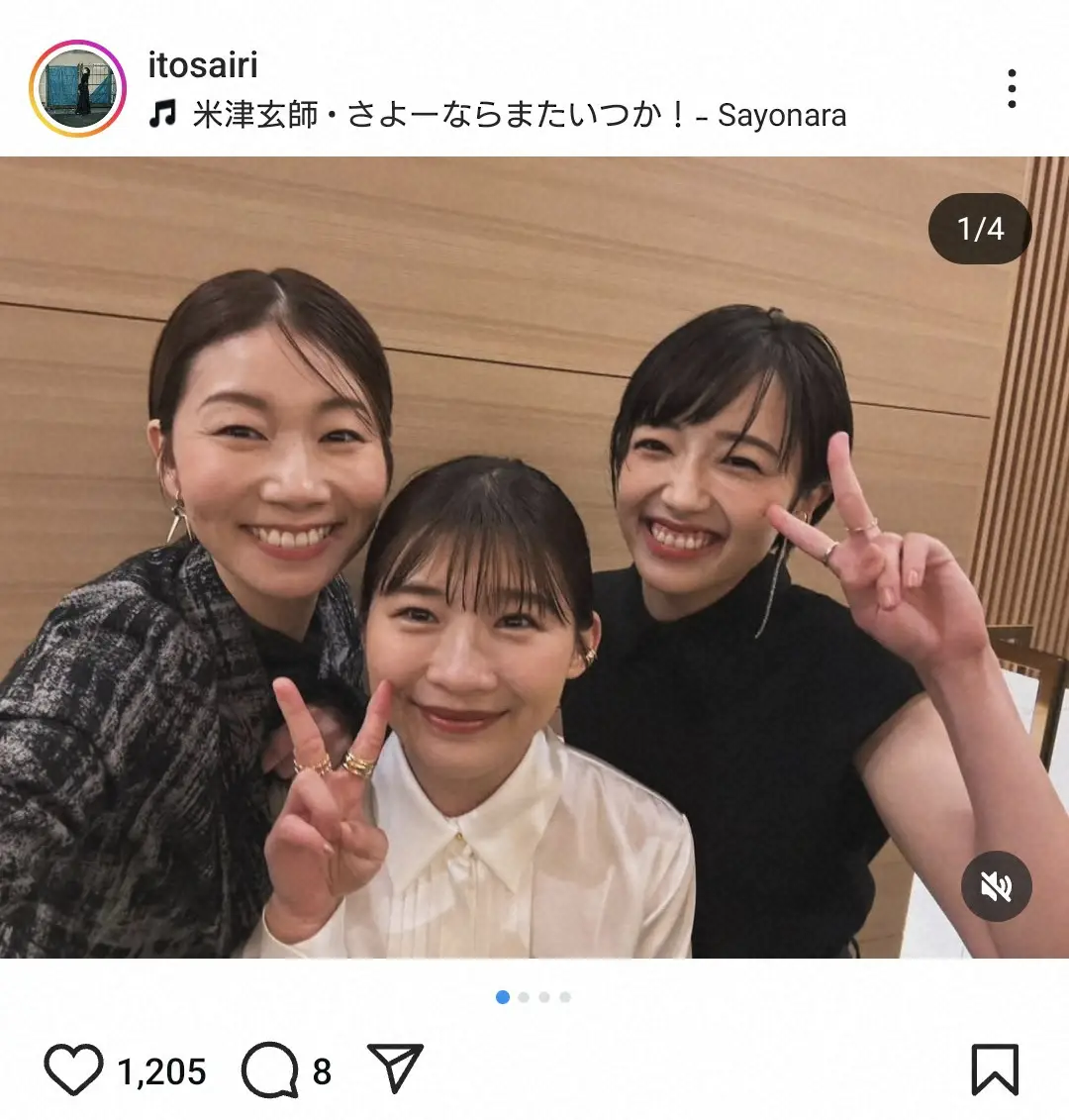 伊藤の投稿に、フォロワーからは「3人とっても素敵です おめでとうございます」「わー懐かしいお顔ぶれ、お三人そろってうれしいです」「寅ちゃん花江ちゃんよねさんの3ショット眼福です」といった反響が寄せられている。