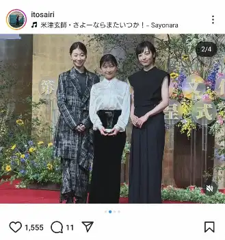 また贈呈式での自身と、共演者の森田望智、土居志央梨との3オフショットや、登壇時のショットなども投稿すると「同時に、みさと、土居ちゃん。本当にありがとう。2人は特に作品中ずっと刺激と学びと励ましと言いきれない程 沢山のことを教え、与えてくれました。ウジウジ悩んだりしてる私の背中をいつも支え、寄り添い、押してくれました」と回顧。