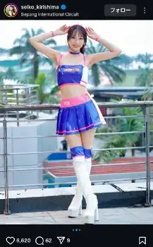 “レース界の聖子ちゃん”霧島聖子 ブルーのミニスカ・コス姿披露に「めっちゃキレイー!」「最高!」