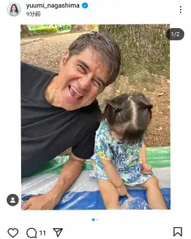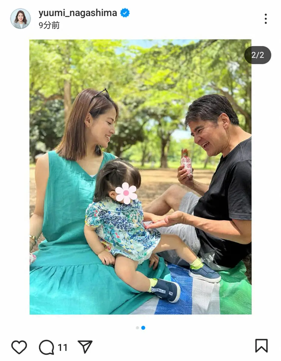 フリーアナウンサーの永島優美(33)が13日、自身のインスタグラムを更新。1歳半の娘と父でサッカー元日本代表FWの永島昭浩氏(61)のショットを披露した。