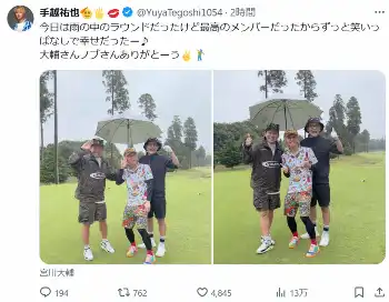 手越祐也 人気芸人と雨のラウンドも「幸せだった―」フォロワー興奮「豪華」「特番1本作れそう」の声