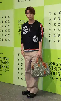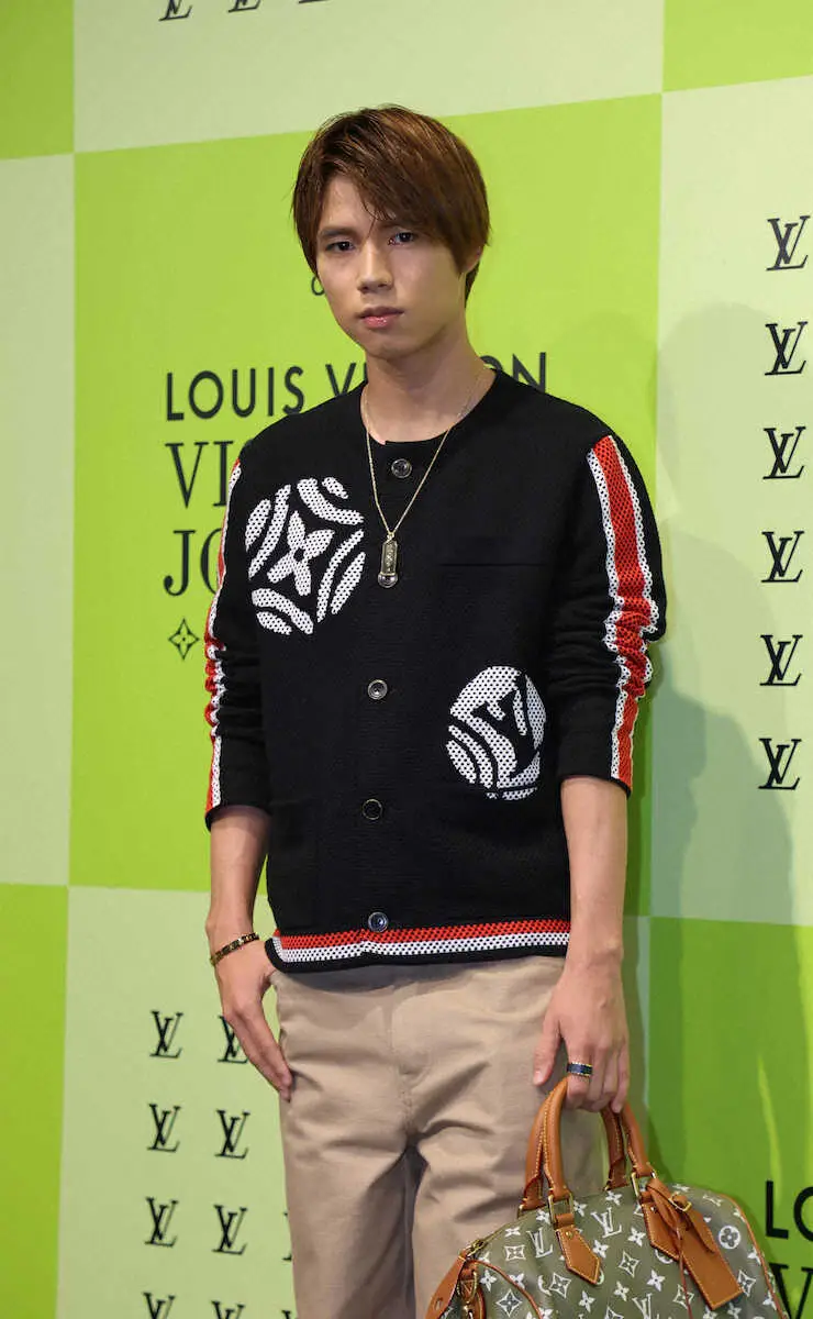 モノグラムのボストンバッグを手に、大胆なヴィトンのマークをあしらったカーデを合わせ、ファッションのポイントにも真っ先に「このニットですね」とにっこり。デザイナーのNIGO(54)がショーで着用していた同じものだそうで「見た時に“自分も着たい”と思っていてそれを今日、着られてめっちゃうれしいです」と喜んだ。「バッグにも日本の感じを取り入れたくて煎茶カラーにしました」。