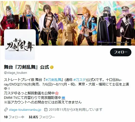 舞台「刀剣乱舞」15日の東京公演中止を発表、出演者の負傷を報告、16日から再開へ