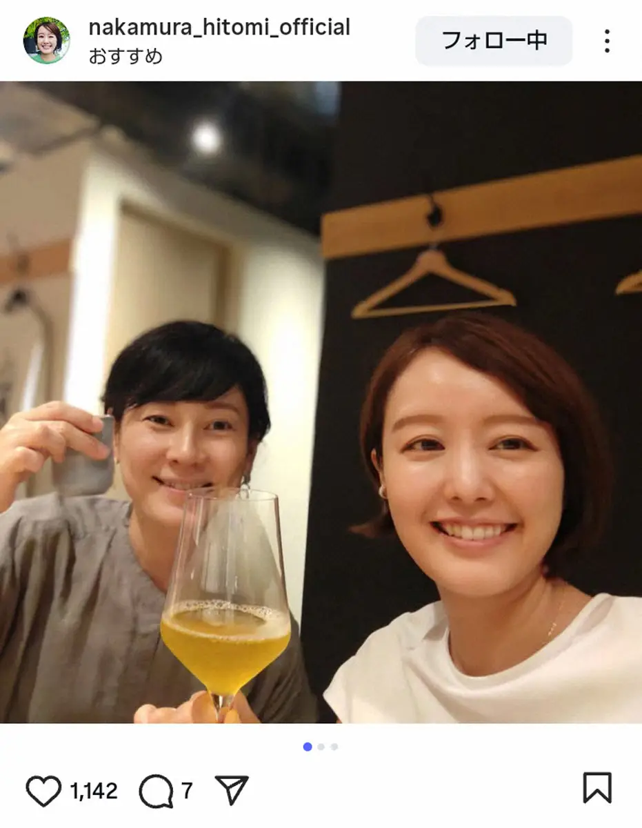 元フジテレビでフリーアナウンサーの中村仁美(46)が15日までに自身のインスタグラムを更新。同局の先輩、島田彩夏アナウンサー(51)とご褒美ランチに行ったことを報告した。