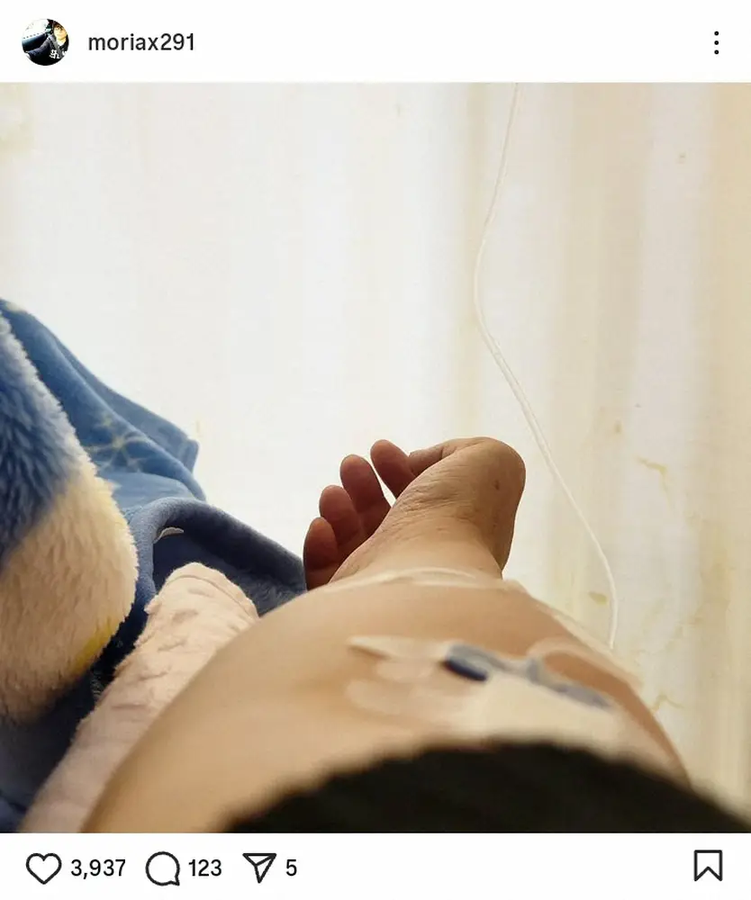 森川は「ひやぁ、久しぶりにピットイン」と報告。点滴中とみられる腕の写真を公開し、「まあ、相当気を付けているのに。この天候ではねぇ…、私と同じような皆さん、頑張って乗り越えましょう♪」と呼びかけた。