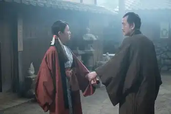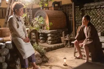 連続テレビ小説「あんぱん」第45話。朝田釜次(吉田鋼太郎)は若松のぶ(今田美桜)を引き止め…(C)NHK