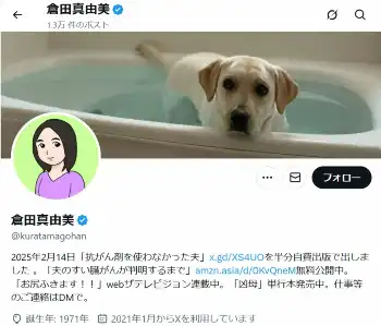 倉田真由美氏の公式X(@kuratamagohan)から 遠野なぎこさん死去 倉田真由美氏が追悼「とても正直で、真面目な人」遠… ギャラリーで見る この記事のフォト 2025年07月17日の画像一覧 もっと見る 2025年07月17日の画像をもっと見る