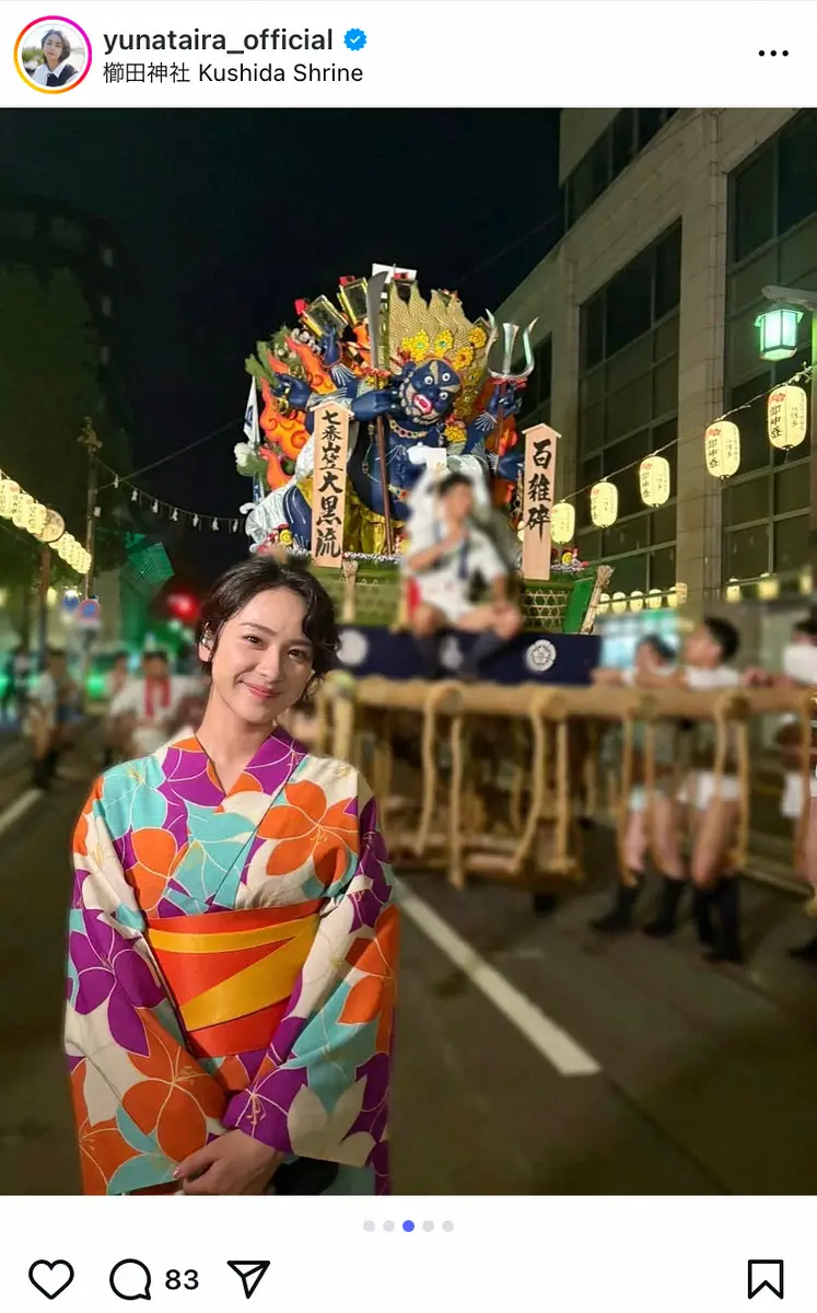 女優の平祐奈(26)が16日、自身のインスタグラムを更新。博多祇園山笠での浴衣姿を披露した。